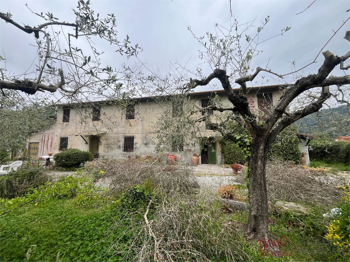 Piano di Mommio: In Esclusiva Antico cascinale (mq.350) tipo Masseria corredato da ampi terreni (mq3000) tutti pianeggianti tipo Prato, adatto per azienda agricola e/o attività ricettiva tipo B&B corredato di Legnaia, forno, lavatoio, rimesse esterne per uso agricolo. L'immobile è attualmente suddiviso al piano terra: in Cucina, Soggiorno, disimpegno, cantina, due ripostigli, legnaia, forno, W.c. ed al primo piano tre grandi camere matrimoniali, un grande studio, ripostiglio e bagno. Abitabile da subito con acqua ed elettricità funzionanti oltre a vasca IMOF, necessita di ammodernamento e ripensamento anche in base alle esigenze dell'acquirente ma per la sua particolare struttura e sapore, oltre che per la localizzazione geografica, si presta per essere eventualmente utilizzato come struttura ricettiva e/o azienda agricola.